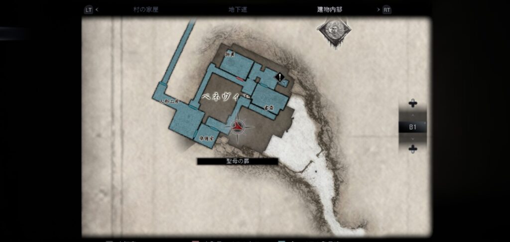 台をうまく利用してエレベーター前に行き、配電盤の鍵を使用すると幼子のレリーフ入手