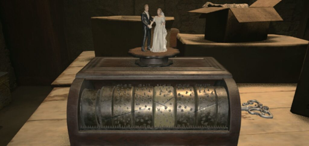 白い扉に入り、ゼンマイを使ってオルゴールの謎解きしてピンセット入手