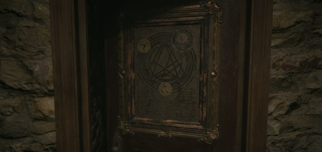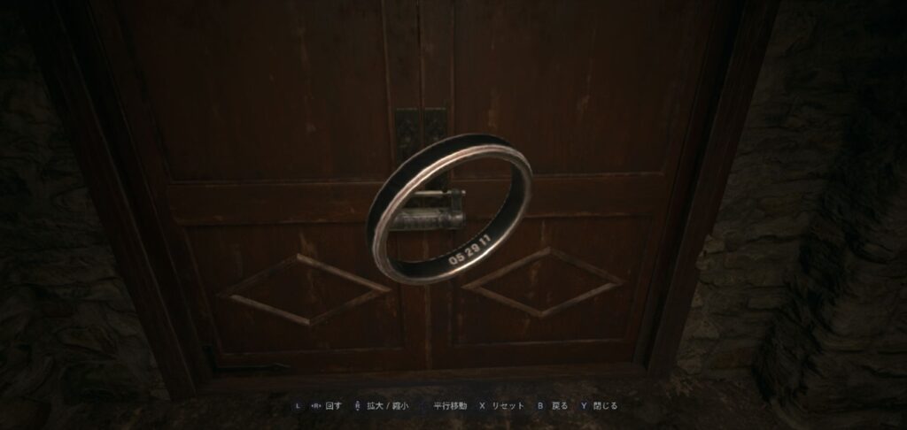 扉の前を解錠(答えは指輪に書いてあります)