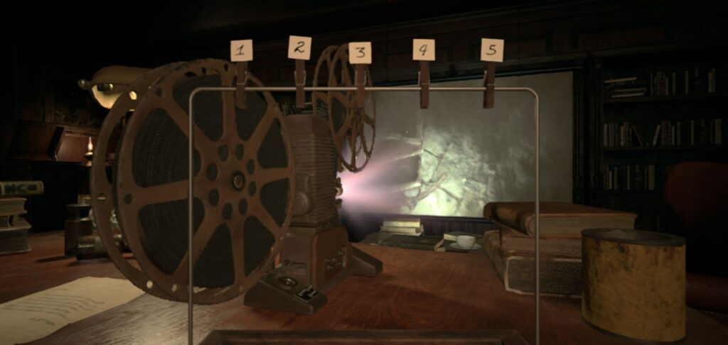 映写機を見たら奥の部屋でハサミを入手