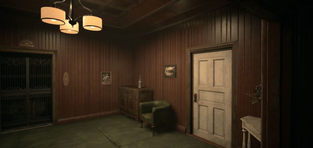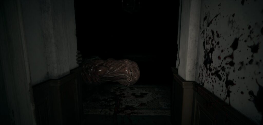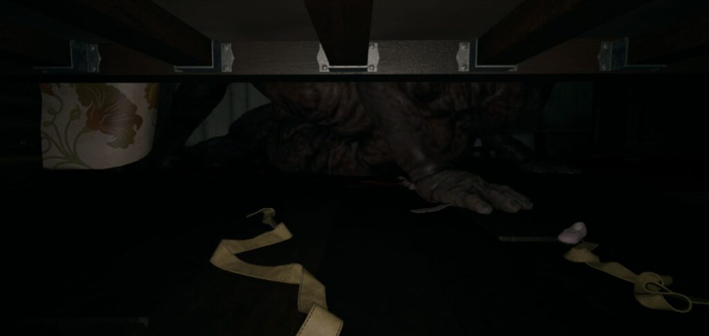 戻って階段を上がろうとしたら敵が出現するので、ヒューズのあった部屋に戻り、ベッド下に隠れる