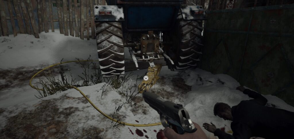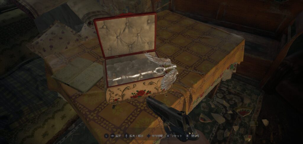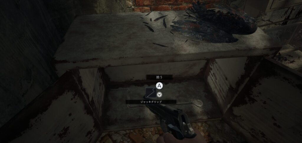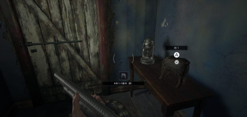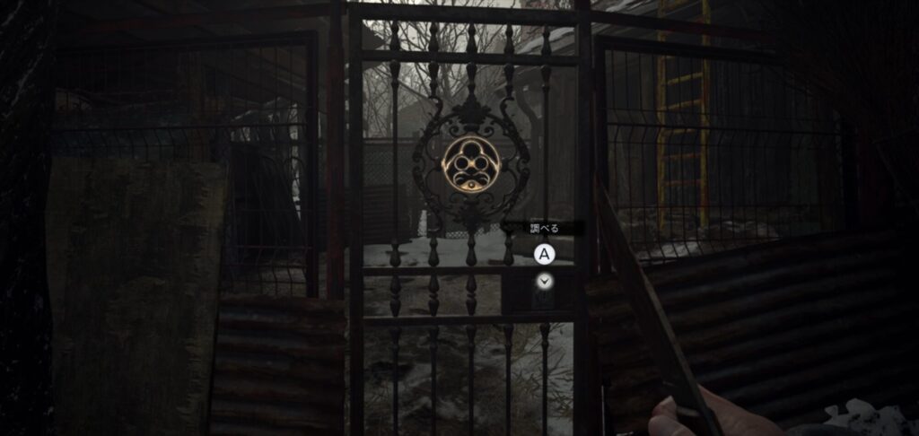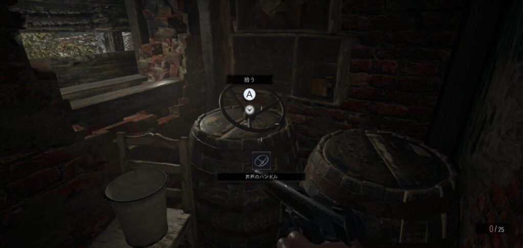 鉄格子の鍵で中へ入り、小屋の中でハンドル入手