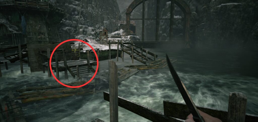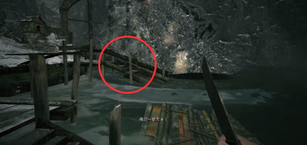 先へ進むとボートのキーがあり、敵複数に囲まれるので注意。