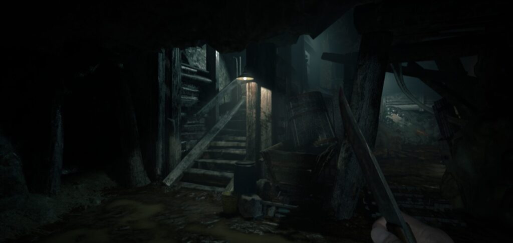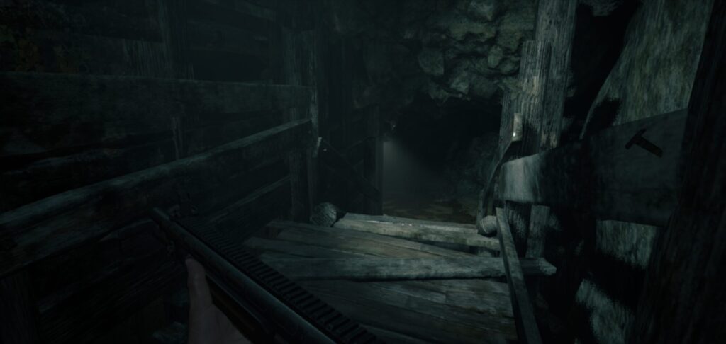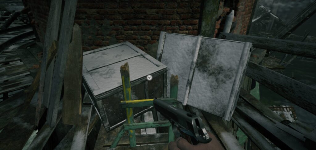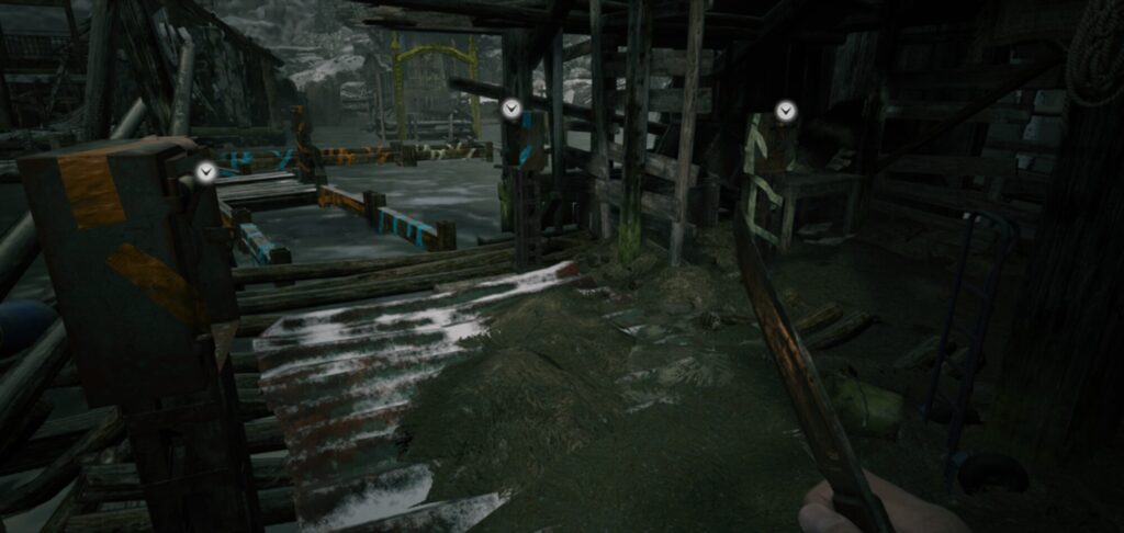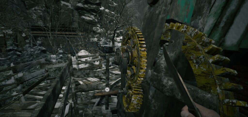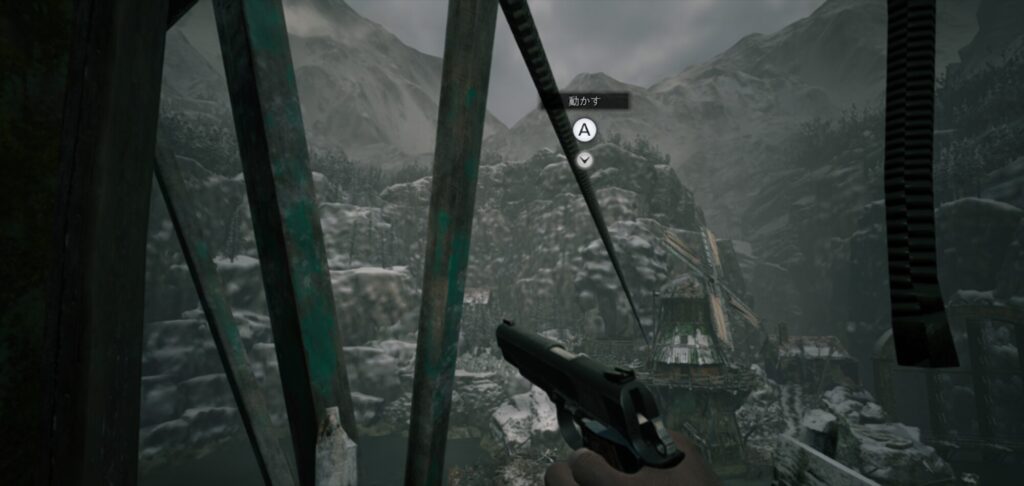 奥にある壊れたハシゴを調べたらクランクを回せます