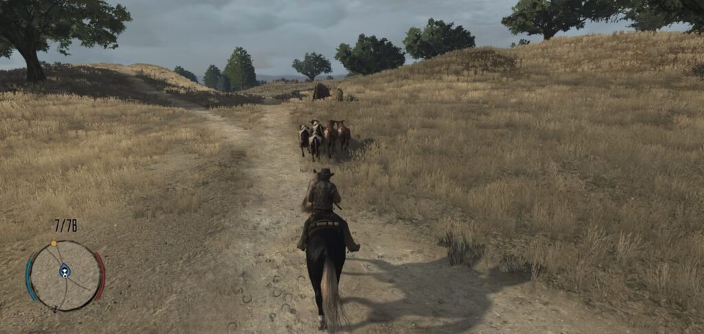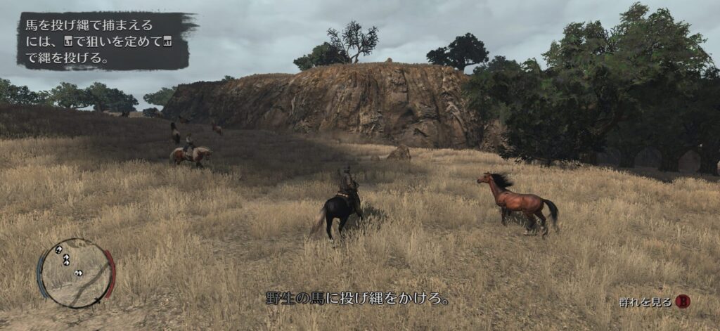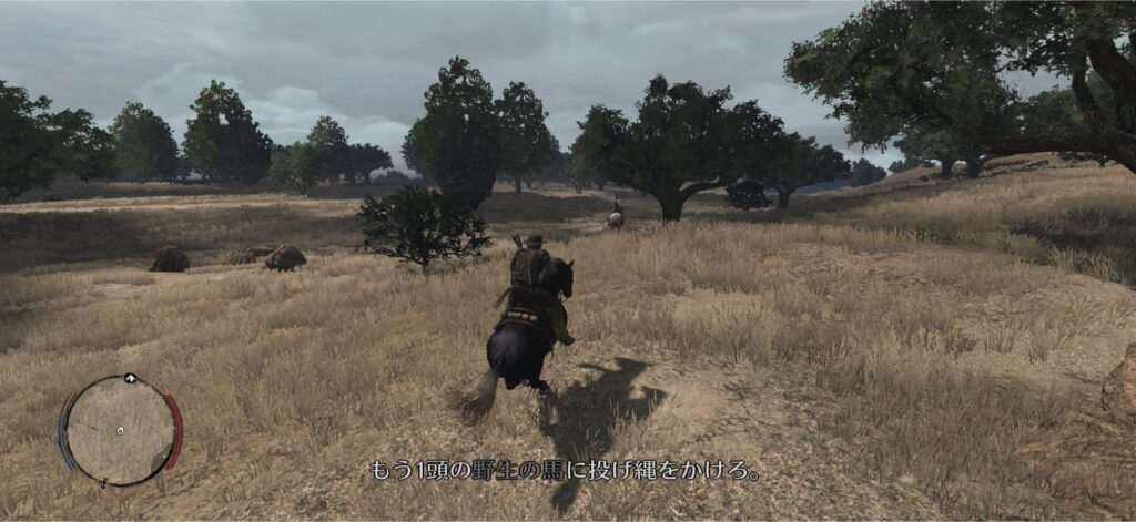 自分の馬に乗り換えてもう一頭捕まえる