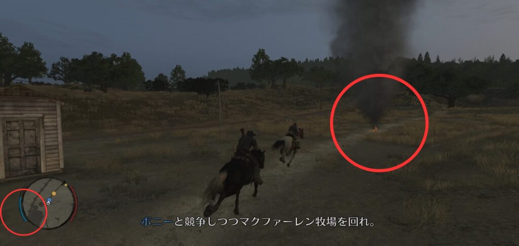 - 目印は焚き火の黒い煙を通ってゴールまで走る