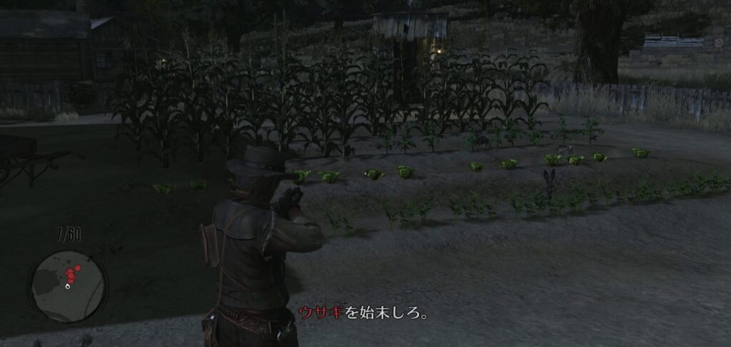 畑を荒らすウサギをライフルで始末する