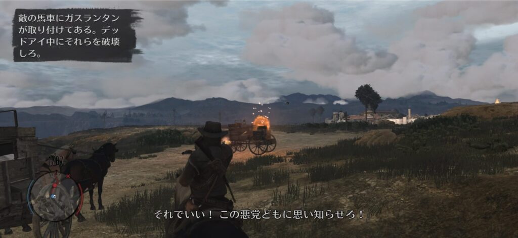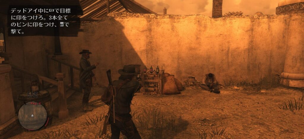 デッドアイ中に3本のビンにマークをつけて撃つ