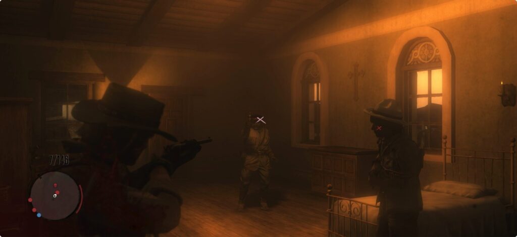大尉と部下が一緒の部屋にいるので、入ったらデッドアイを使って倒す
