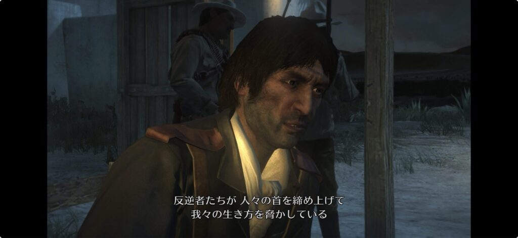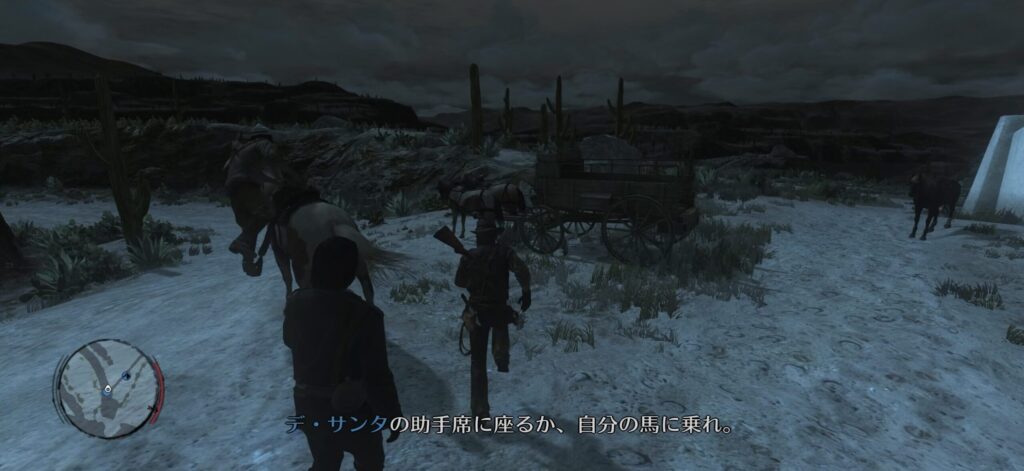 馬車隊と合流後、デ・サンタの助手席に乗り、反逆者を倒す