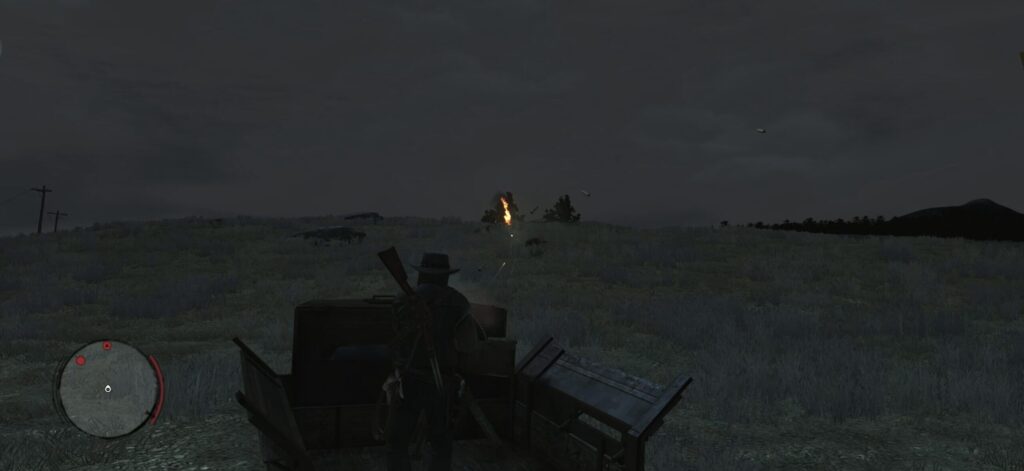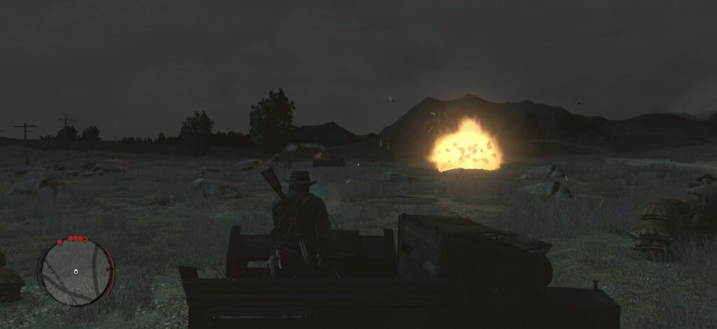 馬車の上のガトリングで敵を殲滅(馬車が先に進んだら、前進する方向の敵を優先的に倒す)
