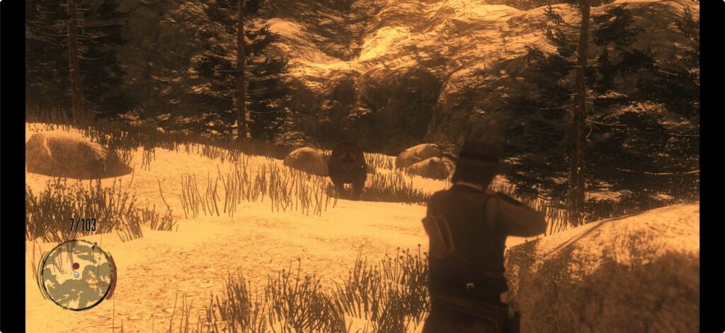 一人でクマを狩りに行ったジャックがクマに襲われているため、デッドアイを使って狩る